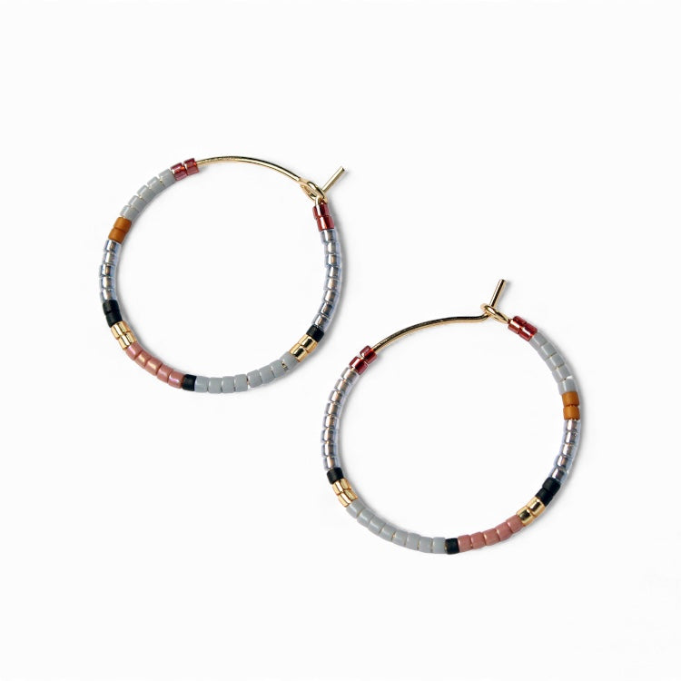 Amp up your beauty with these colorful beaded hoops. Available in 2 endlessly wearable sizes. Shown here in shades of gray and metals.