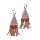 Franja is a bluma fave! This time in fall hues. Color shifts from top to bottom in a cool ombre effect with beads. Fun fringe style is set on a hug post hoop.