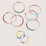 These skinny beaded hoops are in fresh spring color blocks. Glass beads and gold plate. 1" in diameter. Made by women in Guatemala.