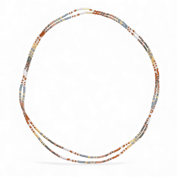 This tiny choker duo uses the shimmeriest beads to sparkle day or night! Inspired by global textiles and heirloom beading, these patterned chokers adorn you in style.