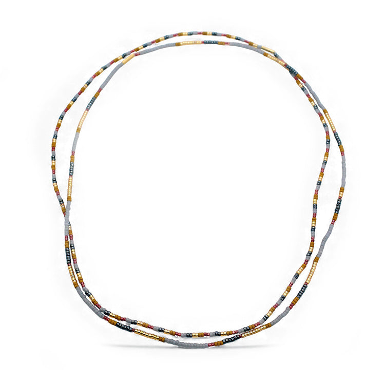 Our Gaia beaded chokers feature patterns inspired by global textiles and heirloom beading. Set of 2 stretch chokers. Stack 'em up! 15 1/2" around. Glass beads.