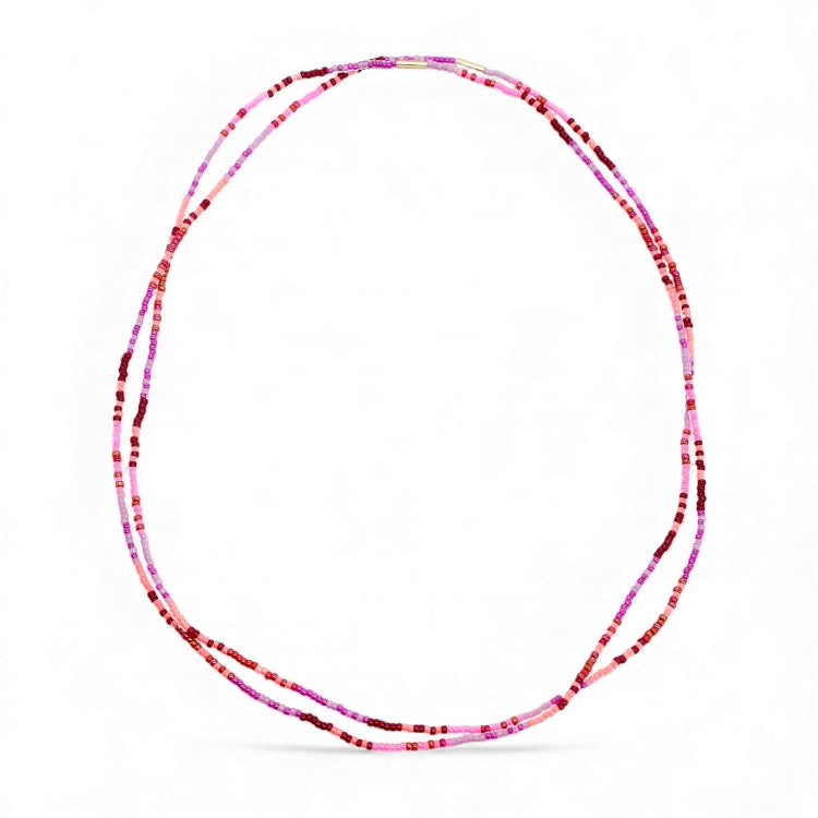 This tiny choker duo uses the shimmeriest beads to sparkle day or night! Inspired by global textiles and heirloom beading, these patterned chokers adorn you in style.